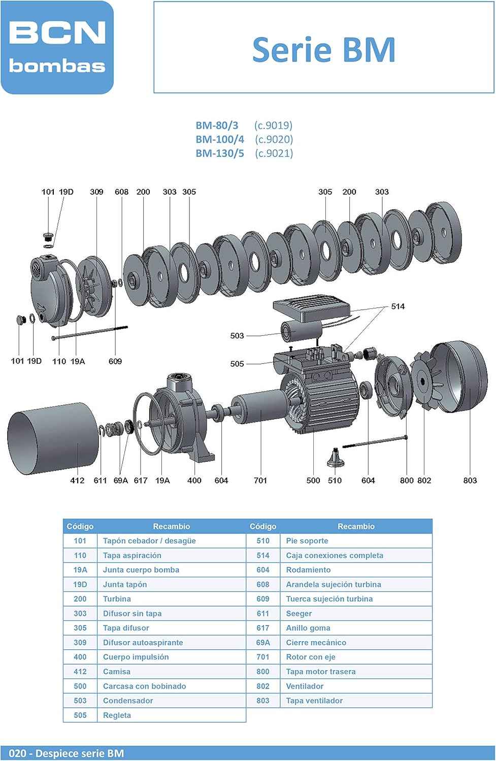 BCN bombas - Bomba de água horizontal 1CV BM-100/4 (monofásica)