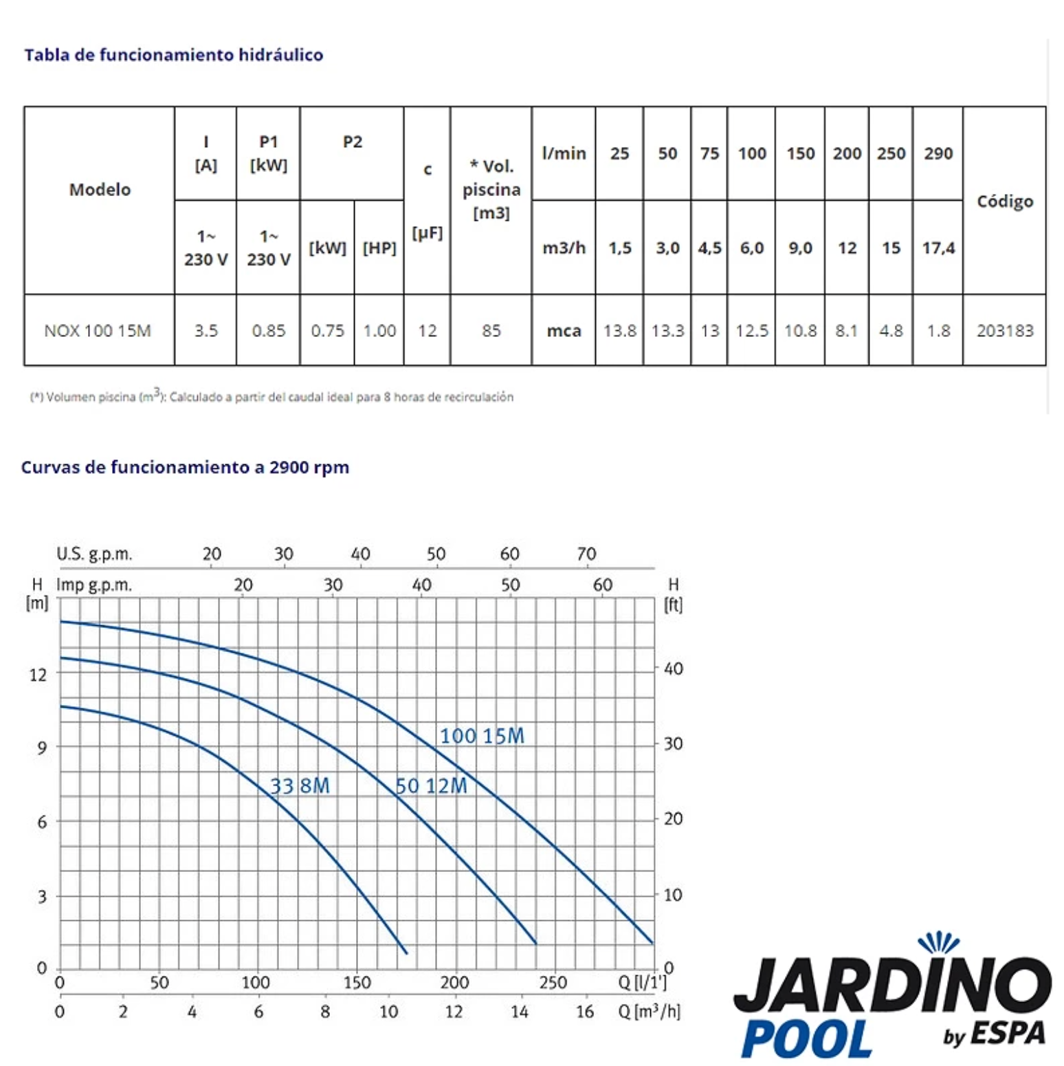 Bomba para piscina ESPA Jardino Pool Nox 100 15M