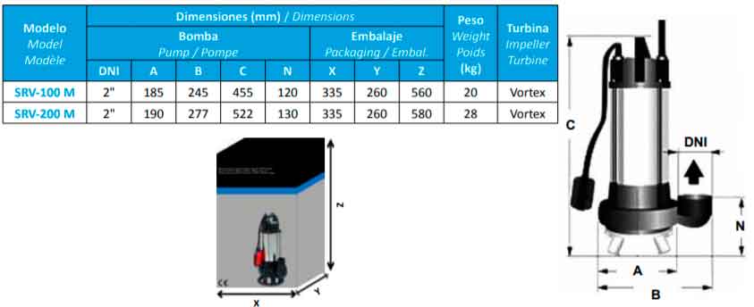 Bomba submersível para águas residuais Série SRV BCN