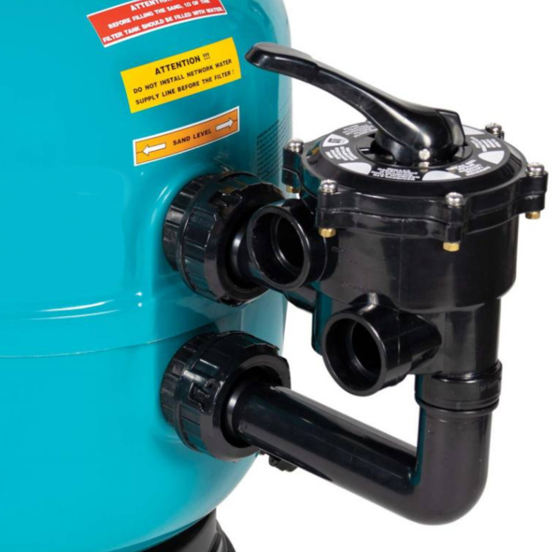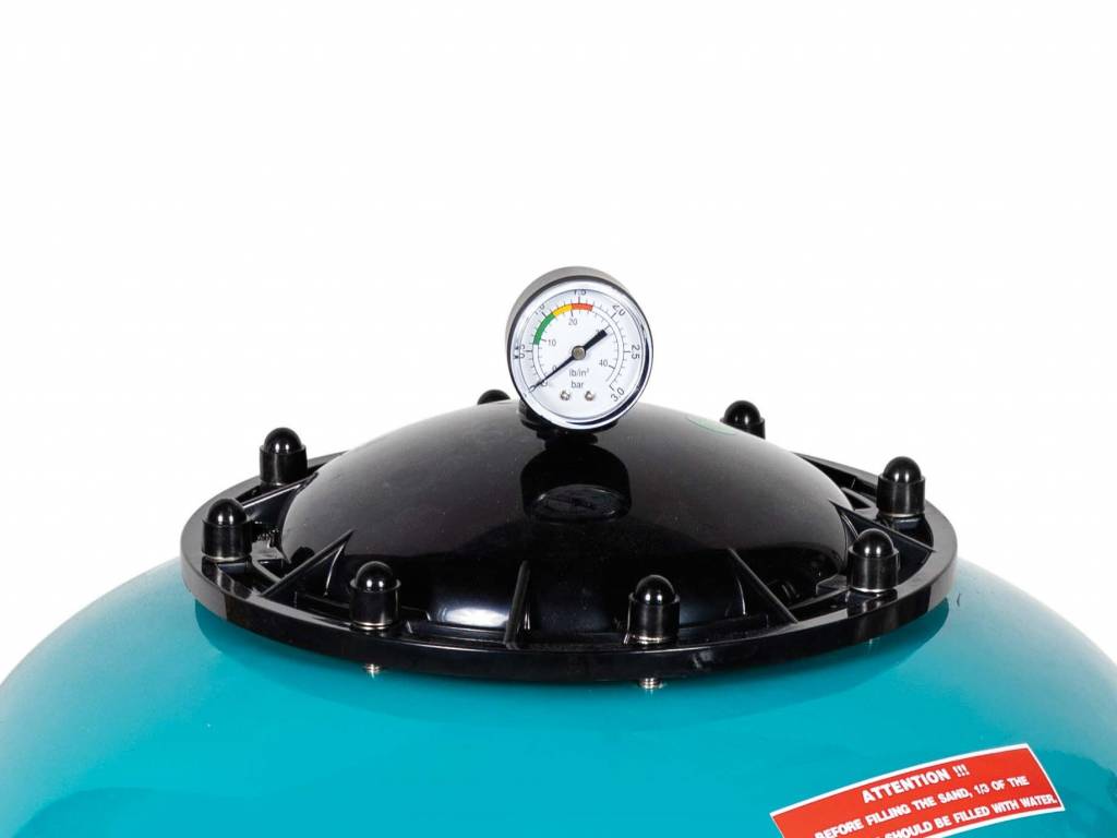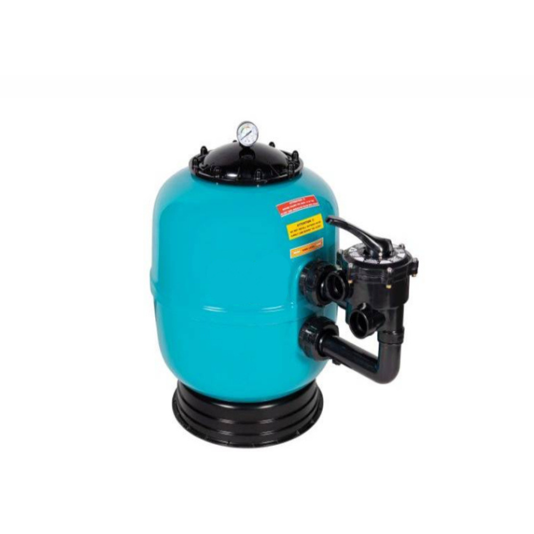 Filtro para piscinas privadas fabricado em poliéster laminado reforçado com fibra de vidro e uma camada exterior de gel coat em cinzento chumbo. Além disso, a junta do corpo do filtro é reforçada com uma tripla camada de poliéster para garantir a sua durabilidade, razão pela qual oferecemos uma garantia de 5 anos para o corpo do filtro.