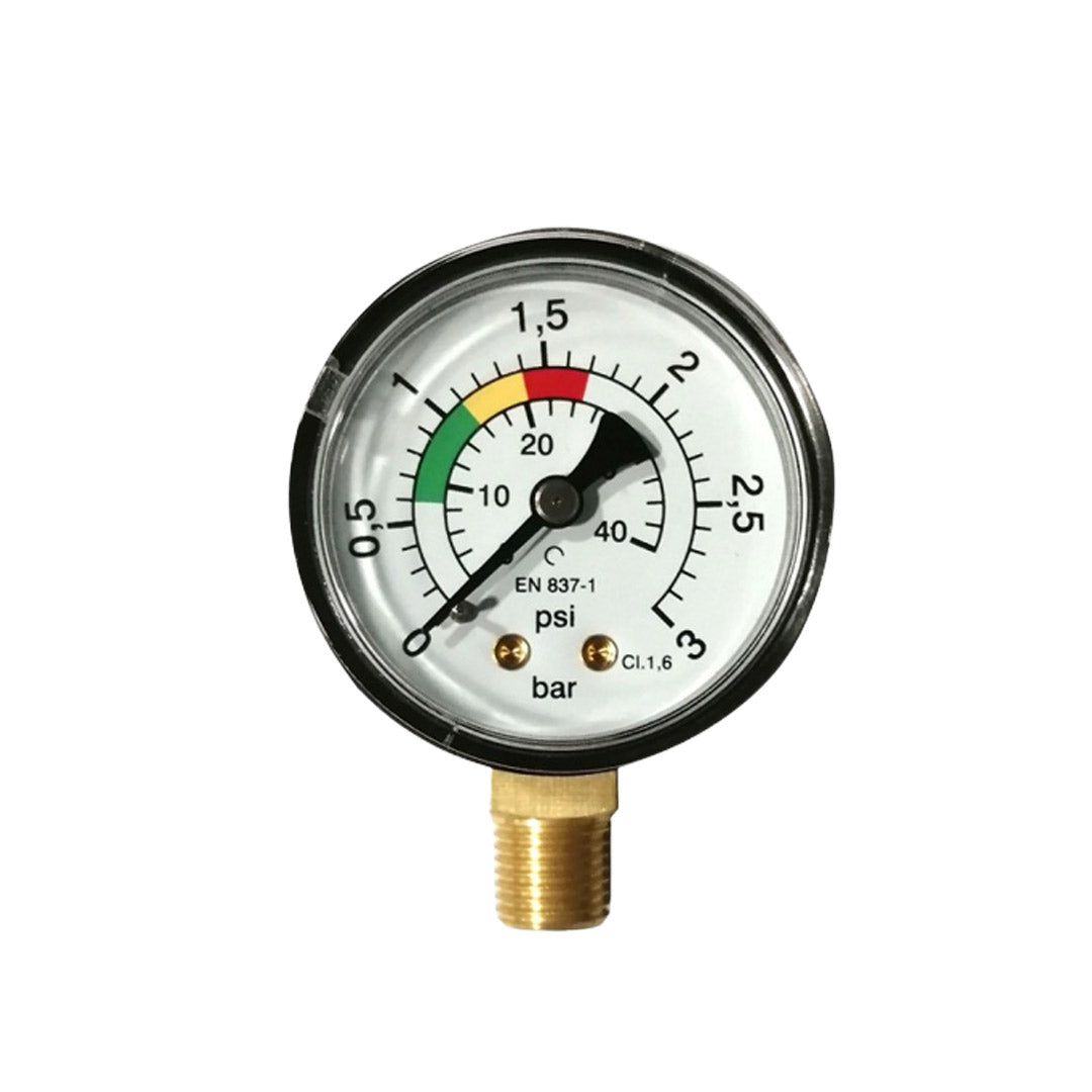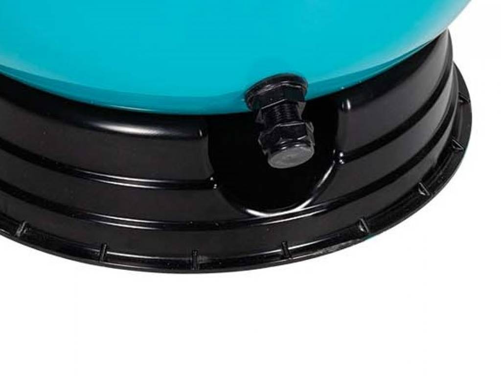 Está equipado com uma válvula seletora de parafuso lateral, um manómetro, um coletor de água e um dreno para escoar a água.