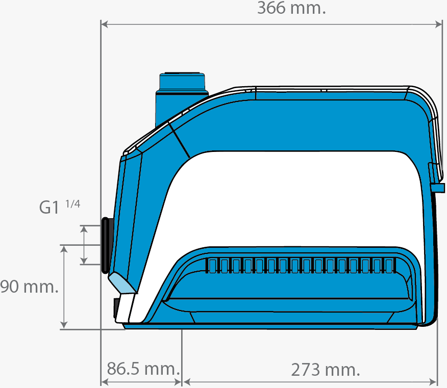 O seu design integrado permite reduzir ao mínimo o ruído do equipamento após a sua colocação em funcionamento. O golpe de aríete é eliminado ao iniciar e parar a bomba, fazendo-o progressivamente. Intensidade sonora de 48 dB.
