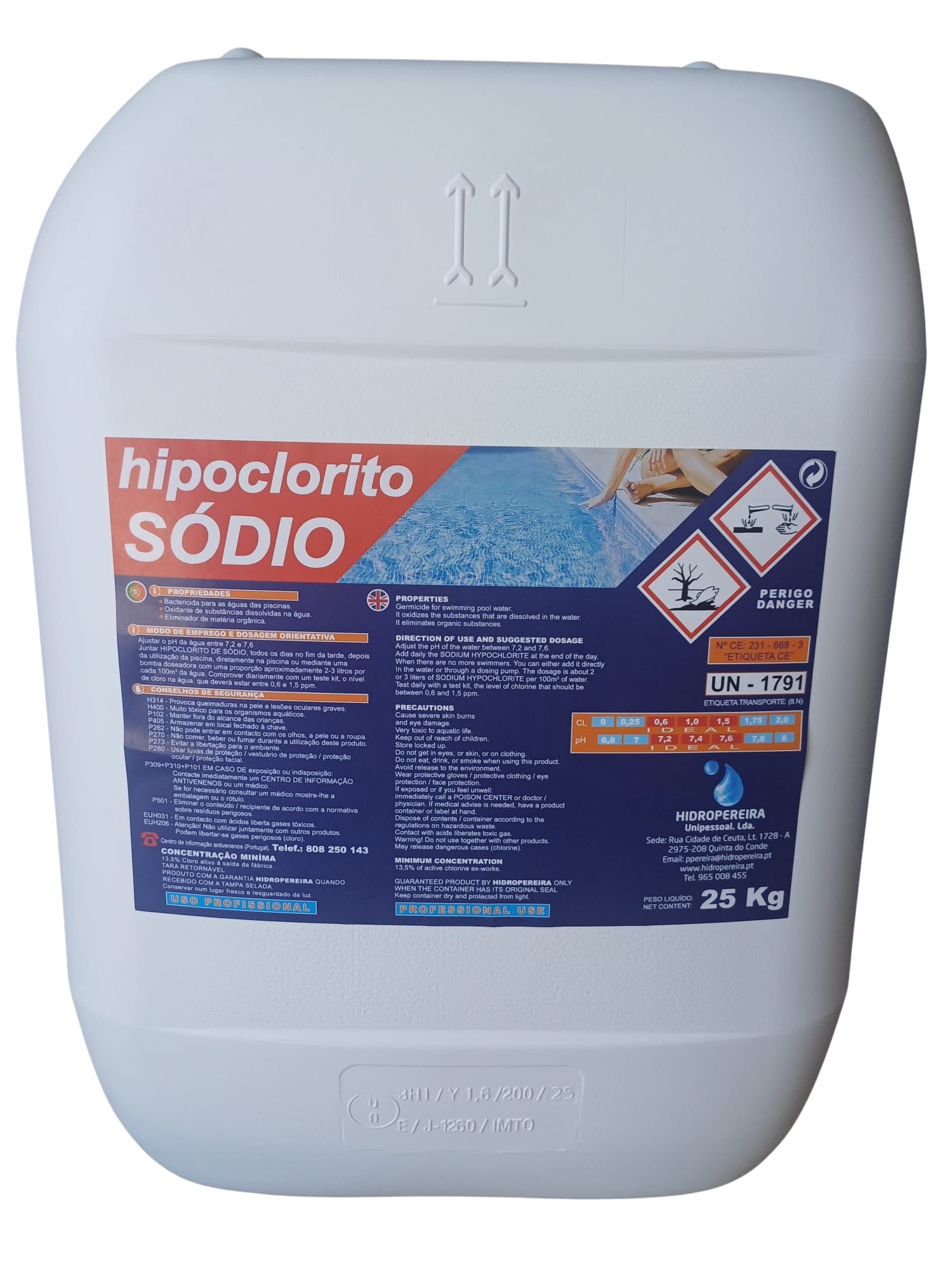 O Hipoclorito de Sódio, ou Cloro Líquido, é uma forma eficaz de remover as bactérias possivelmente nocivas para a saúde da água da piscina, eliminar a matéria orgânica em suspensão na água e oxidar as substâncias dissolvidas.