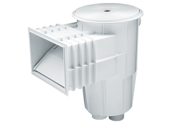 Skimmers fabricados em ABS branco, com flutuador de comporta e charneira para regulação de caudal. Ligação inferior de aspiração: rosca int. 1 1/2″, ext, 2 ″. Ligação simultânea ao escoadouro: Ø int. 50. Ligação superior de evacuação de água restante Ø 40. Cesto recolhe-folhas. Caudal recomendado 5 m3/h. Recomenda-se instalar um skimmer a cada 25 m² de superfície de lâmina de água. Todos os skimmers da gama têm um tratamento UV nas partes não enterradas.